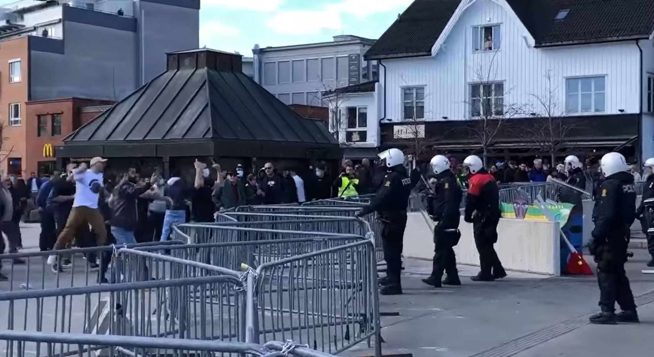 Sian-leder Lars Thorsen satte fyr på Koranen under en markering i Sandefjord lørdag. Politiet brukte tåregass mot motdemonstrantene som kastet flasker og stein og ramponerte en politibil.
