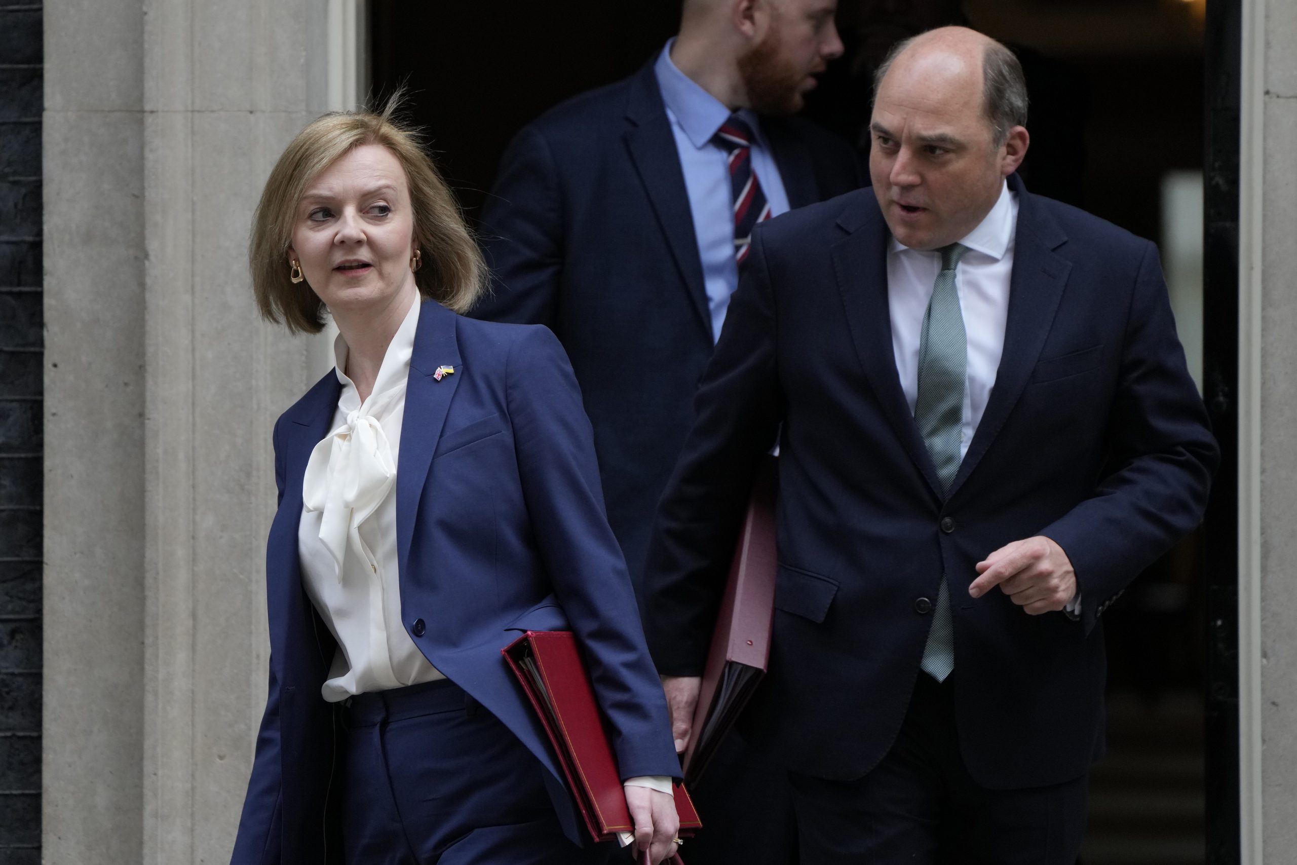 Storbritannias utenriksminister Liz Truss og forsvarsminister Ben Wallace. Foto: AP Photo/Alastair Grant