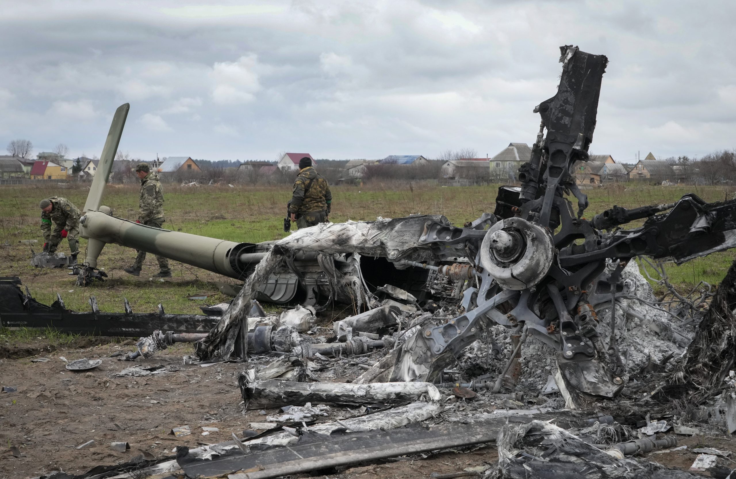 Vraket av av nedskutt russisk helikopter. AP Photo/Efrem Lukatsky