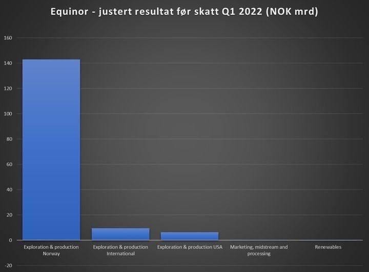 Nærmest hele inntektsstrømmen og overskuddet i Equinor kommer i dag fra virksomhet basert på olje og gass. Den hyppig omtalte fornybarsatsning genererer økonomiske resultater som knapt er synlige i regnskapene.