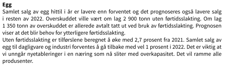 I Bondebladet kan vi også lese at det er overproduskjon av norske egg.
