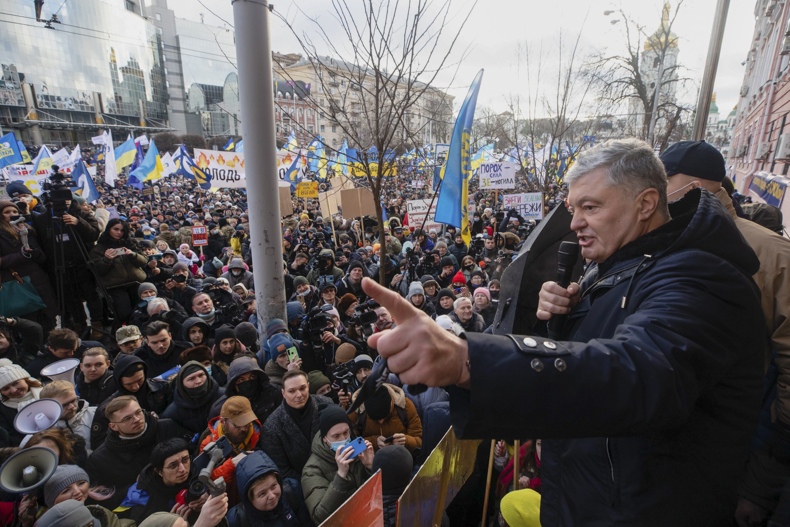 Ukrainas tidligere president Petro Porosjenko opplyser at han nektes å forlate landet og anklager regjeringen for brudd på en såkalt politisk fredsavtale.