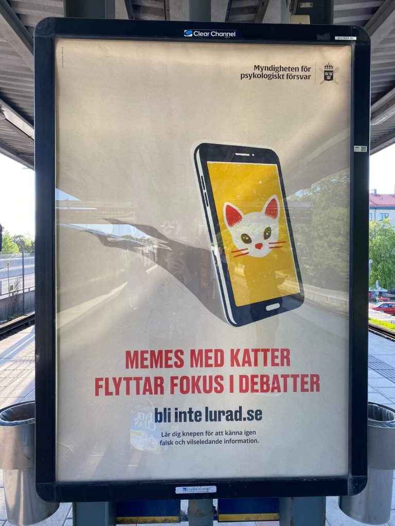 Ifølge Myndigheten för psykologiskt försvar bør svensker være forsiktige når de møter humor, som åpenbart er risikabelt. Såkalte memer er spesielt farlige: