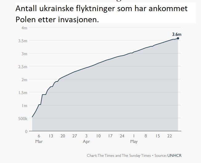Allerede for 2 måneder siden sa ordføreren i Warsawa at de trengte hjelp, at de ikke maktet å ta imot flere flyktninger. De aller fleste er kvinner og barn. Det forventes at over 200.000 ukrainske barn aldri kommer til å reise tilbake til Ukraina.