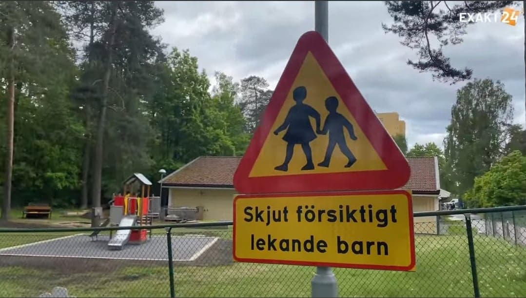 Trafikkskiltet i en Gøteborg-forstad der kriminelle blir bedt om å skyte forsiktig, ble antatt å være en spøk. Men nå har filmen som viser at det er virkelig, gått viralt.