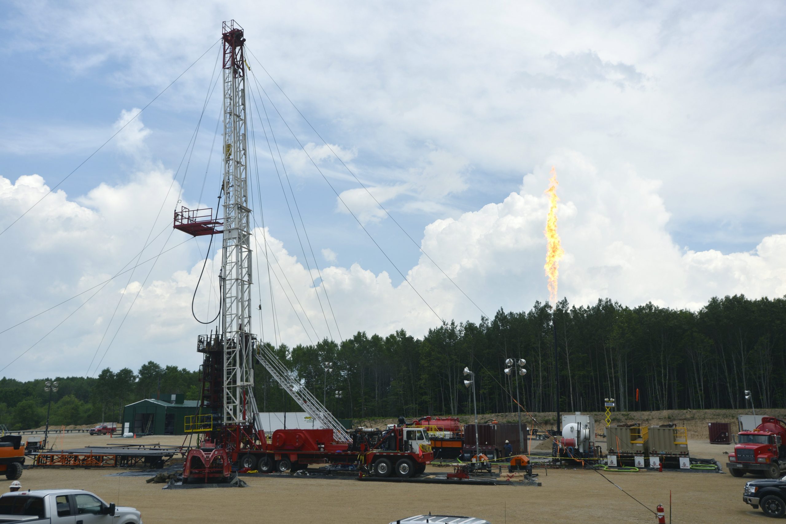 Fra et gassfelt utenfor Kalkaska, Michigan, der gass utvinnes ved hjelp av fracking. Foto: Dale Young / Detroit News / AP / NTB.