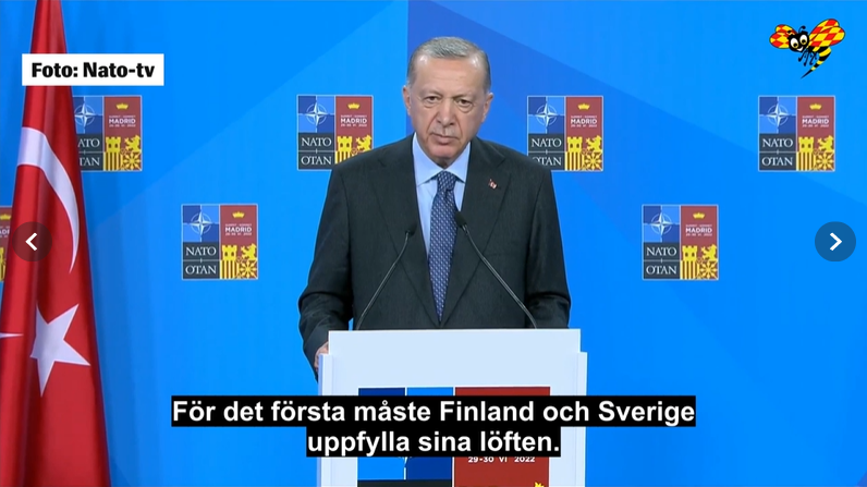 Tyrkias president Erdoğan krever at 73 personer utleveres for at landet skal godkjenne Sveriges NATO-søknad. Erdoğan hevder at Sverige har lovet å utlevere dem og kaller det «en diplomatisk seier».