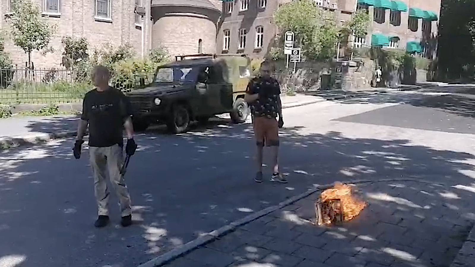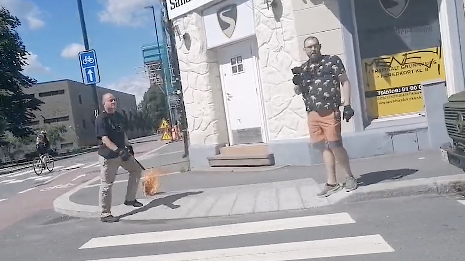 En terrengbil tilhørende SIAN-aktivister som hadde satt fyr på en koran ved en moské i Oslos periferi, ble lørdag ettermiddag presset ut av E6 av en bil med to kvinner som hadde tatt opp forfølgelsen av SIAN.