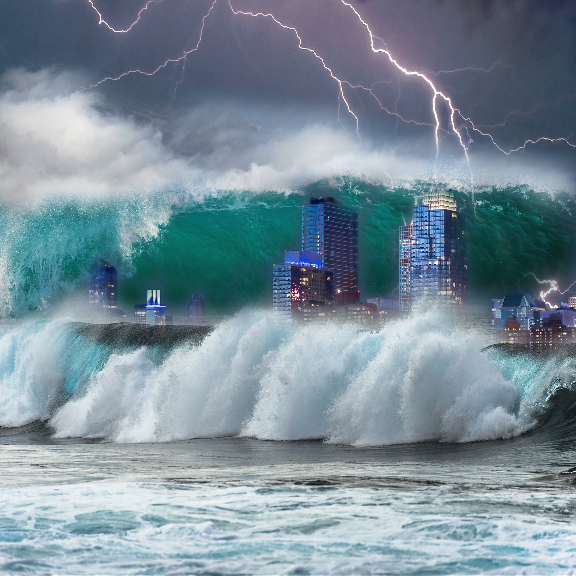 Tsunamieffekten. En to megatonns hydrogenbombe saltet med kobolt-60 kan oversvømme og gjøre de store befolkningssentrene på den amerikanske østkysten ubeboelig. Illustrasjon: Pixabay