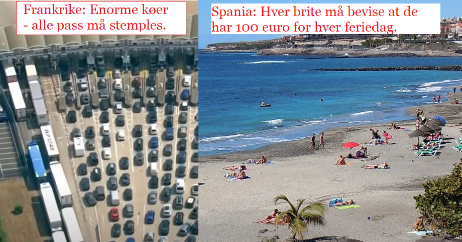 Britene reagerer med sinne på at Spania har lagt inn restriksjoner for briter som vil ha sommerferie i landet. Spania krever at britene må bevise hvor de skal oppholde seg og at de har minst 100 euro til bruk for hver feriedag per person samt returbillett og stempling av pass.