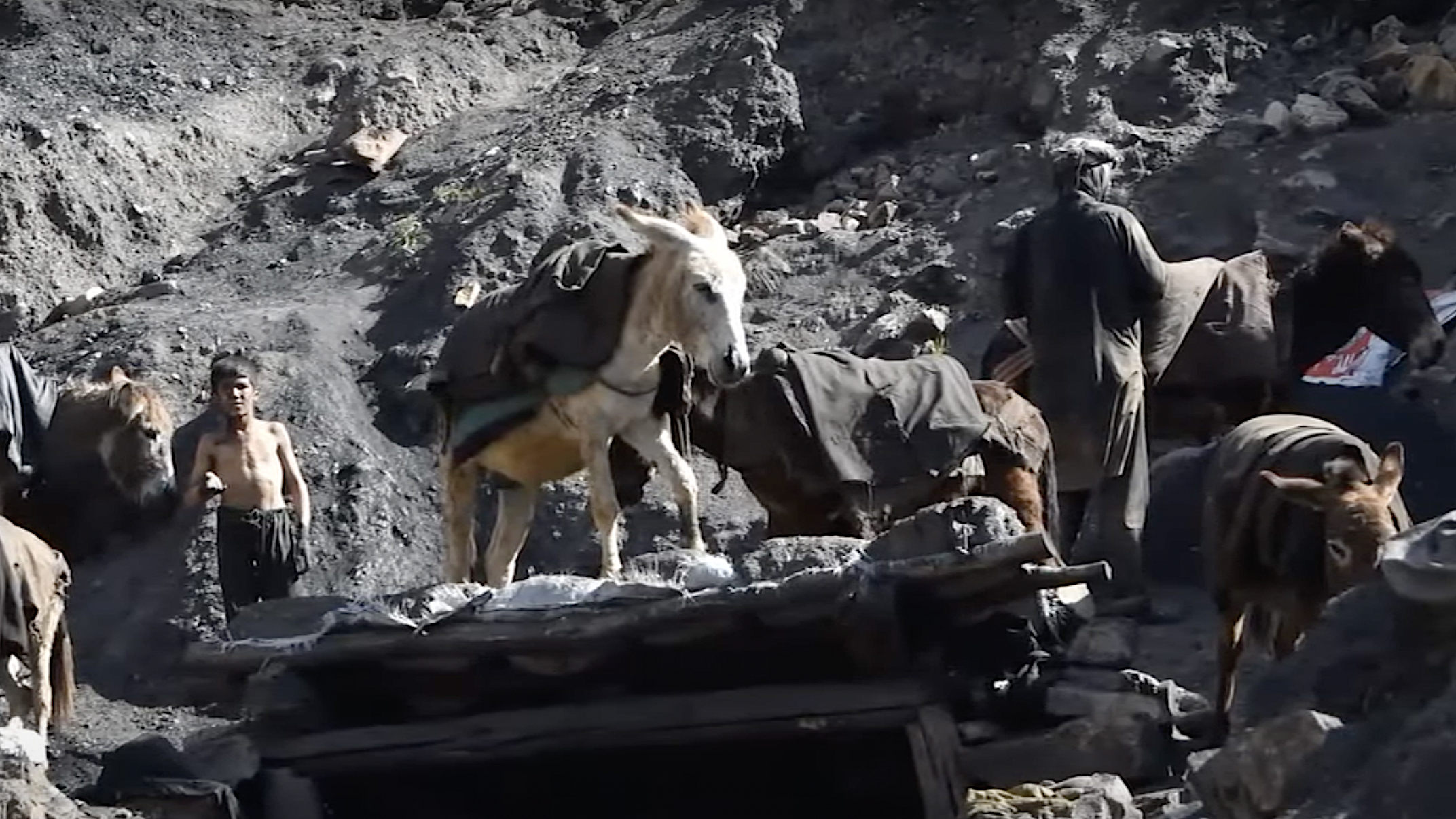 In the mines below Nahrain in Baghlan province, children as young as eight work as labourers, loading the fossil fuel on to donkeys which carry it to trucks bound for Kabul. They work with no machinery or safety gear.