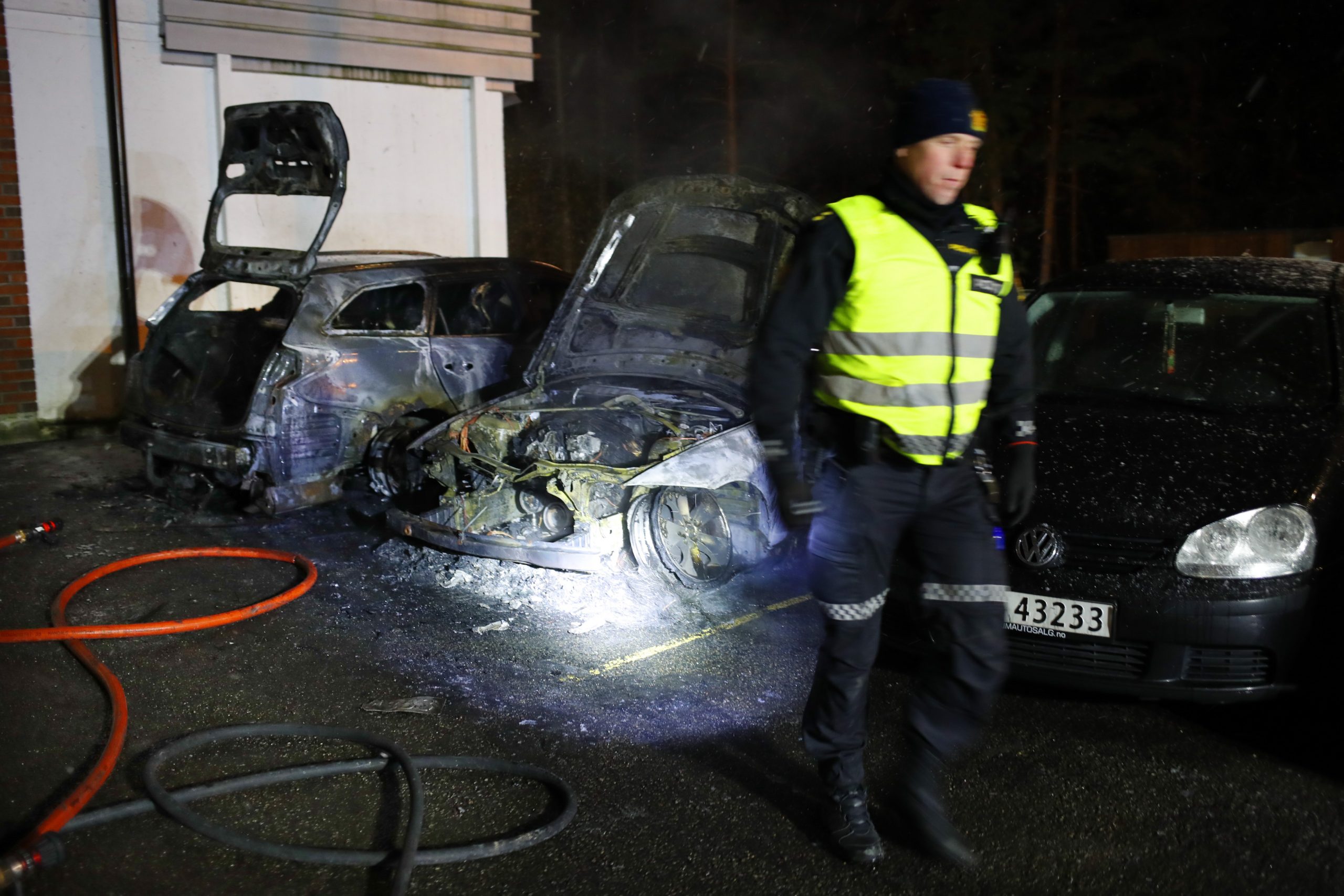 – Flere vitner har opplyst til oss at de har sett en eller to personer løpe fra stedet da bilene begynte å brenne. Vi ser etter dem, sier han.
