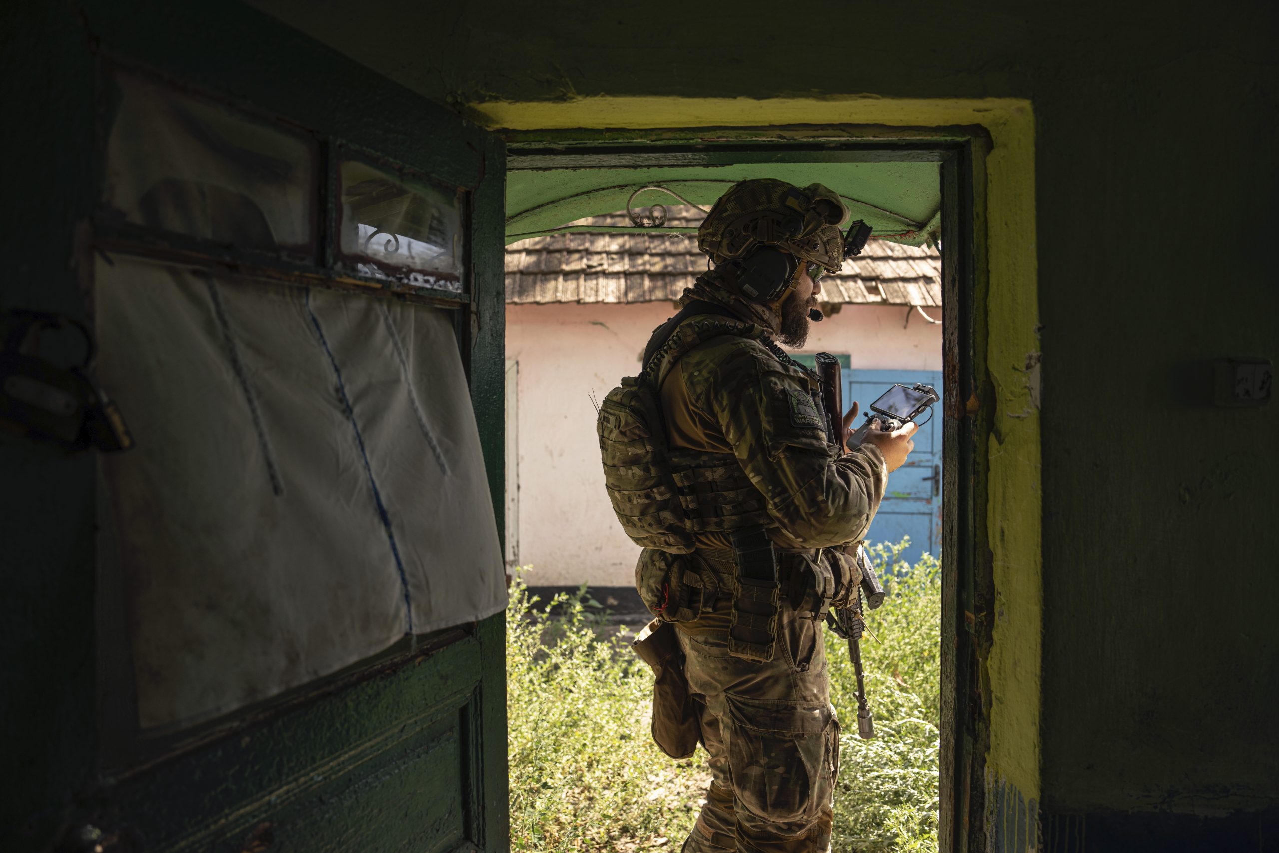 Ukrainsk soldat i Mykolaiv-regionen, mandag 8. august.2022. Foto: AP Photo/Evgeniy Maloletka