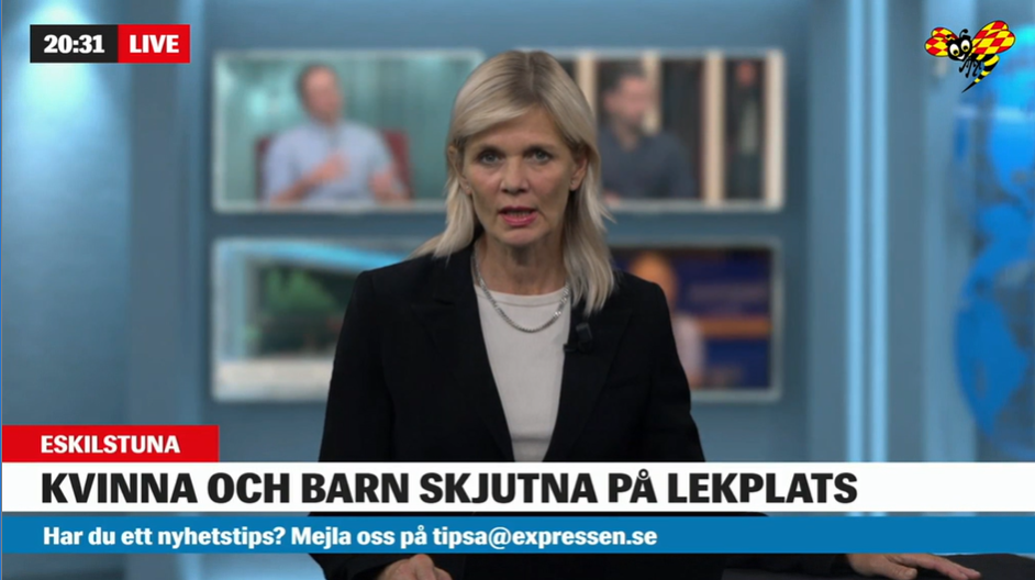 En kvinne og et lite barn er skutt i bydelen Årby i Eskilstuna. Samtidig er flere pågrepet etter at politiet for noen dager siden fant en bombelignende gjenstand i Kungsträdgården i Stockholm.