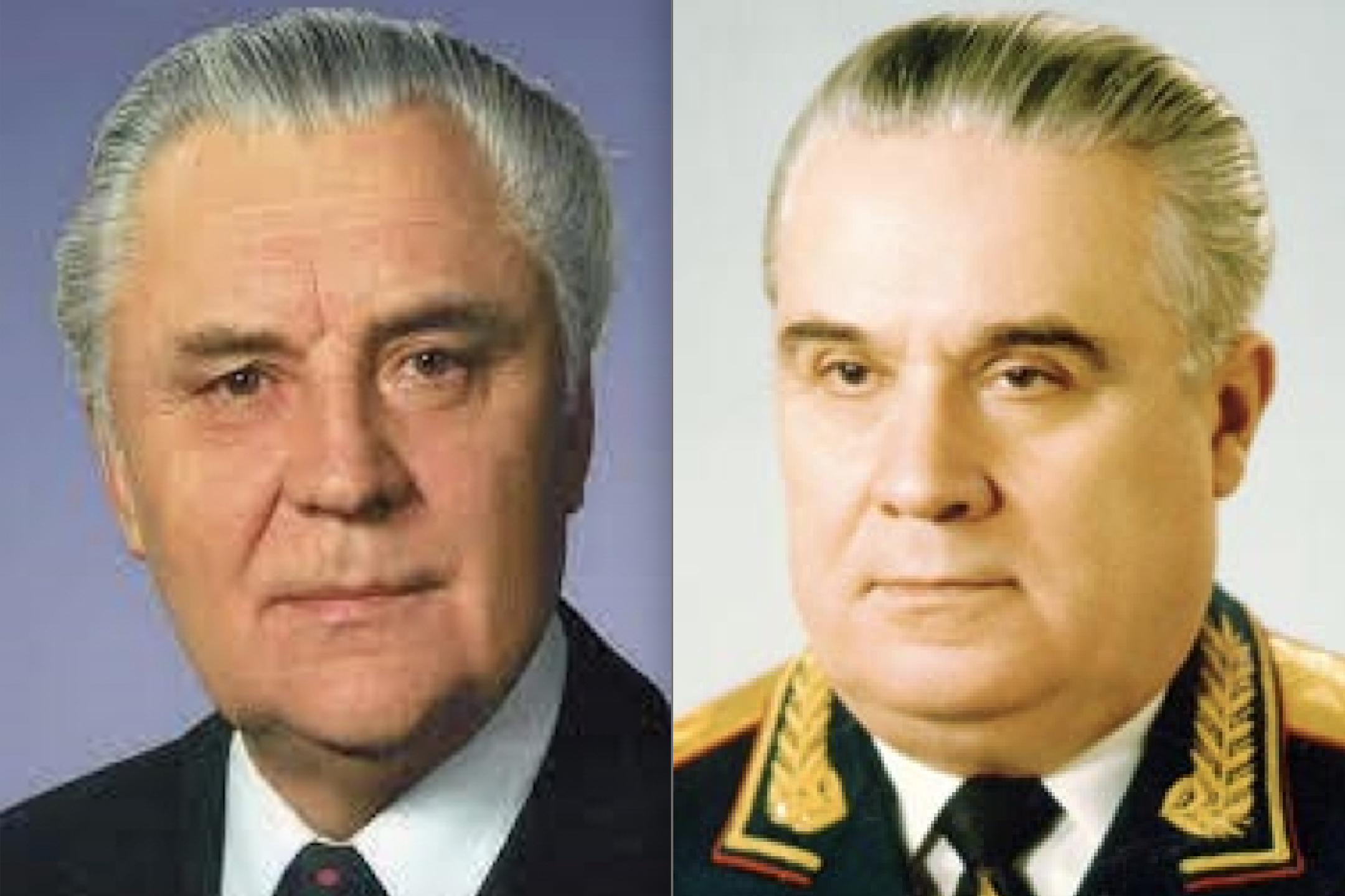 FRYTINNGYTENDE: To av sovjetkommunismens mest skrekkinngytende skikkelser ble holdt informert om de norske bibelsmuglernes reise til Kiev, det ukrainske kommunistpartiets leder fra 1972 til 1989, Volodomyr Scherbitzkij (t.v.), og Ukraina KGBs sjef fra 1970 til 1982, general Vitalij Fedortsjuk (t.h.), som i en periode også var medlem av Politbyrået, sjef for hele KGB og sovjetisk innenriksminister til han i 1986 ble fjernet av Gorbatsjov. Begge er historisk beryktet for terror og brutal undertrykking av all opposisjon og forfølgelse av dissidenter, iberegnet kristne menigheter, som ble betraktet som en trussel mot sovjet-ateismen. Foto: Wikipedia.