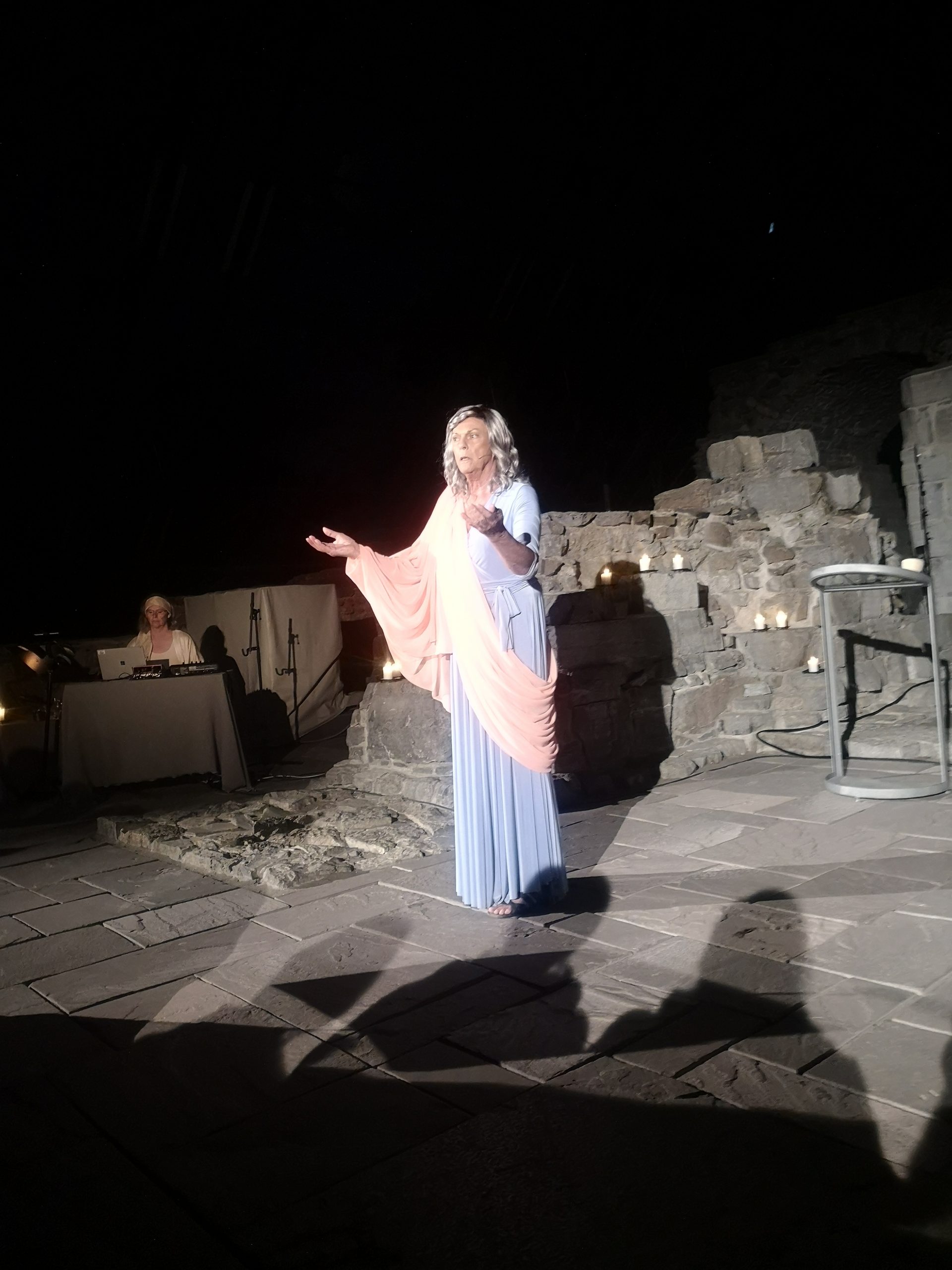 Men domkirkeruinene er ikke en hvilken som helst kulisse; det er et vigslet kirkerom som skal benyttes til gudstjenester og kirkelige handlinger. Det samme gjelder for kirkene i Elverum og Sande der denne forestillingen er planlagt fremført.