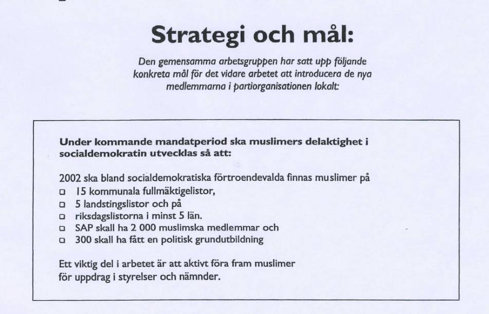 I en avtale den gangen lovet Socialdemokraterna at SMR skulle få med muslimer på riksdagslister, landstingslister og kommunestyrelister.