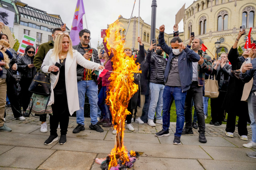 Mange hundre personer møtte opp foran Stortinget og brente flagg og hijaber i protest mot det iranske prestestyret. De fleste norske politikere er ellers opptatt av å hylle nettopp hijaben.