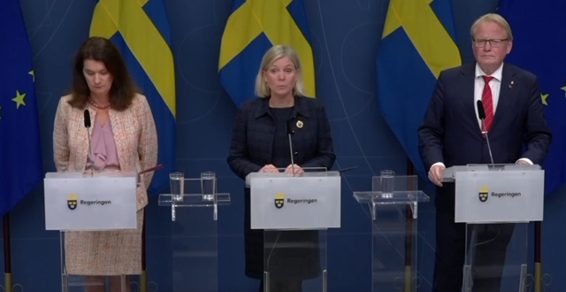 – Regjeringen ser svært alvorlig på situasjonen, sier avtroppende statsminister Magdalena Andersson (S) under pressekonferansen tirsdag kveld.