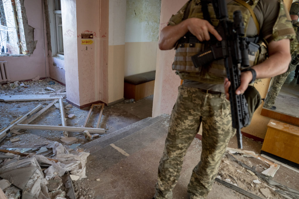 Ukrainsk soldat i krigsherjet hus. Foto: Javad Parsa / NTB