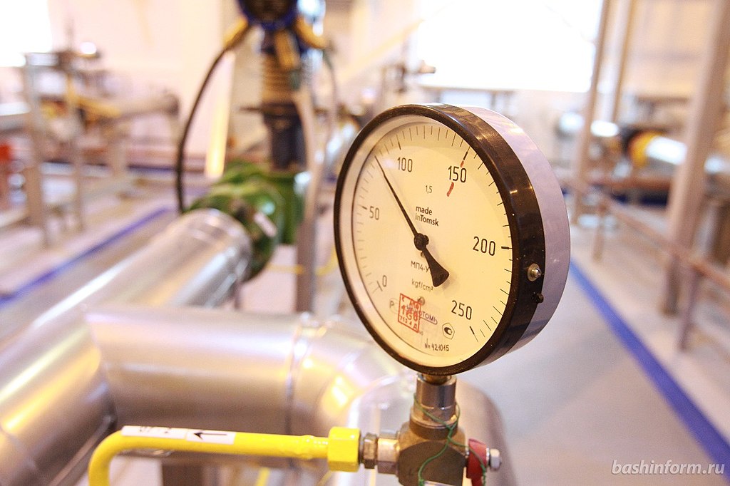 En trykkmåler for naturgass ved et anlegg i den russiske republikken Basjkortostan. Foto: Bashkortostan.ru / CC BY 4.0 / Wikimedia Commons.
