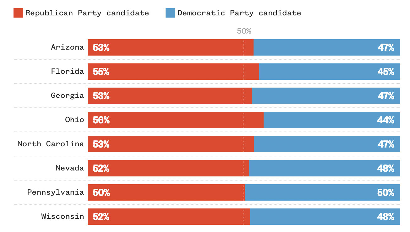 Nå ser velgere i en rekke vippestater ut til å foretrekke de Republikanske kandidatene.