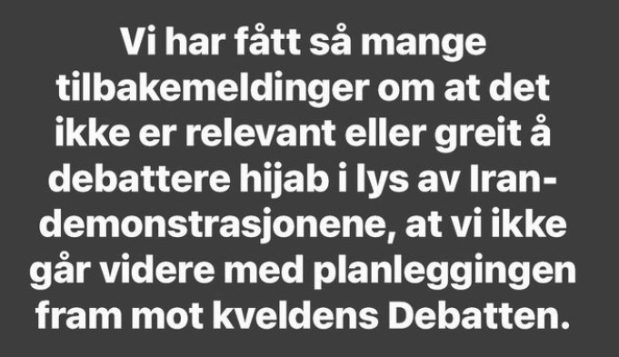 Programleder for Debatten på NRK, Fredrik Solvang, har måttet bøye seg for skravleklassen, nå også på Instagram. Annerledes kan det ikke tolkes når NTB gis jobben med å fortelle at hijab-debatten som skulle vært holdt tirsdag kveld, er avlyst. Med har NRK påført seg selv en virtuell hijab.