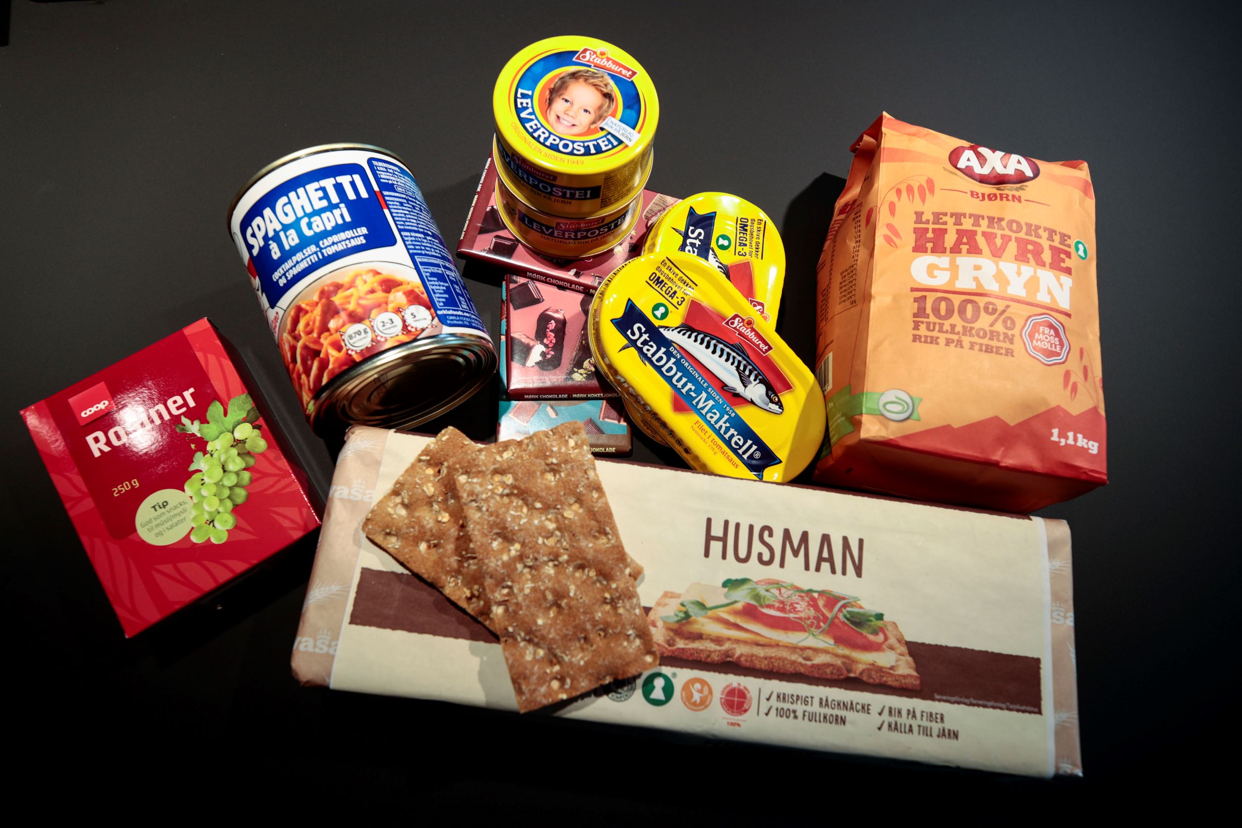 Eksempler på hva som kan inngå i et beredskapslager i hjemmet. Foto: Lise Åserud / NTB