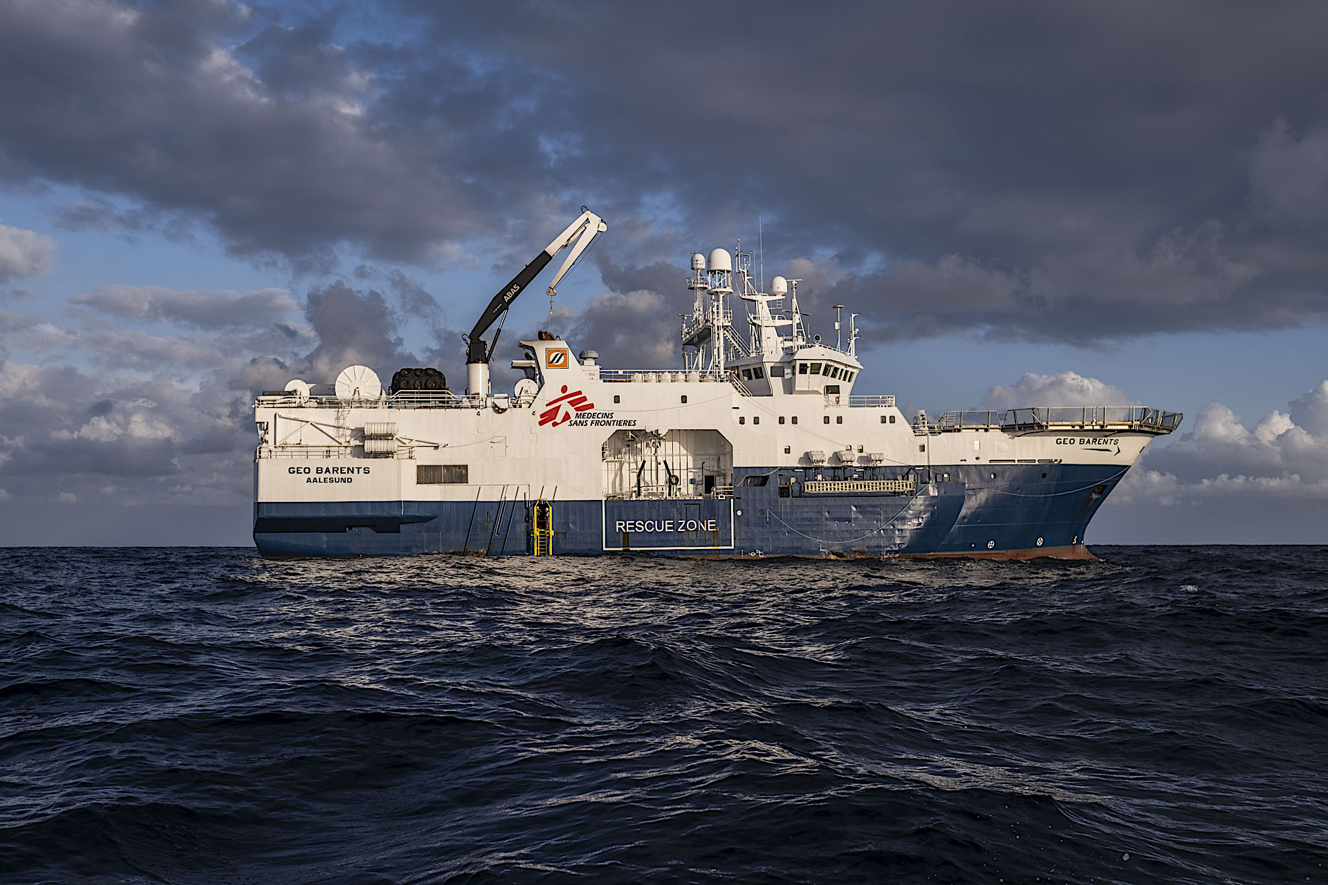 Det norske skipet «Geo Barents», som drives av Leger uten grenser (MSF). Stillbilde: MSF Sea / Twitter.