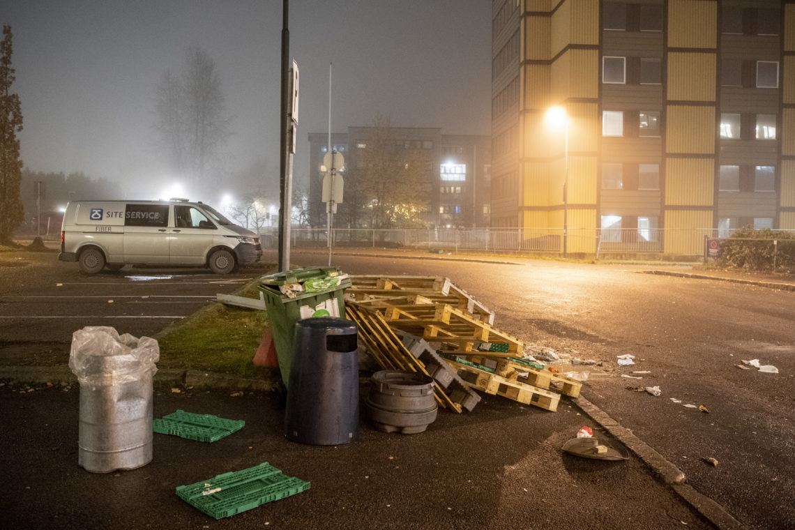 Paller ble påtent, og egg og stein ble kastet mot busser og politiet da et femtitalls ungdommer gikk berserk på Furuset i Oslo mandag kveld. Politiet holdt seg på avstand.