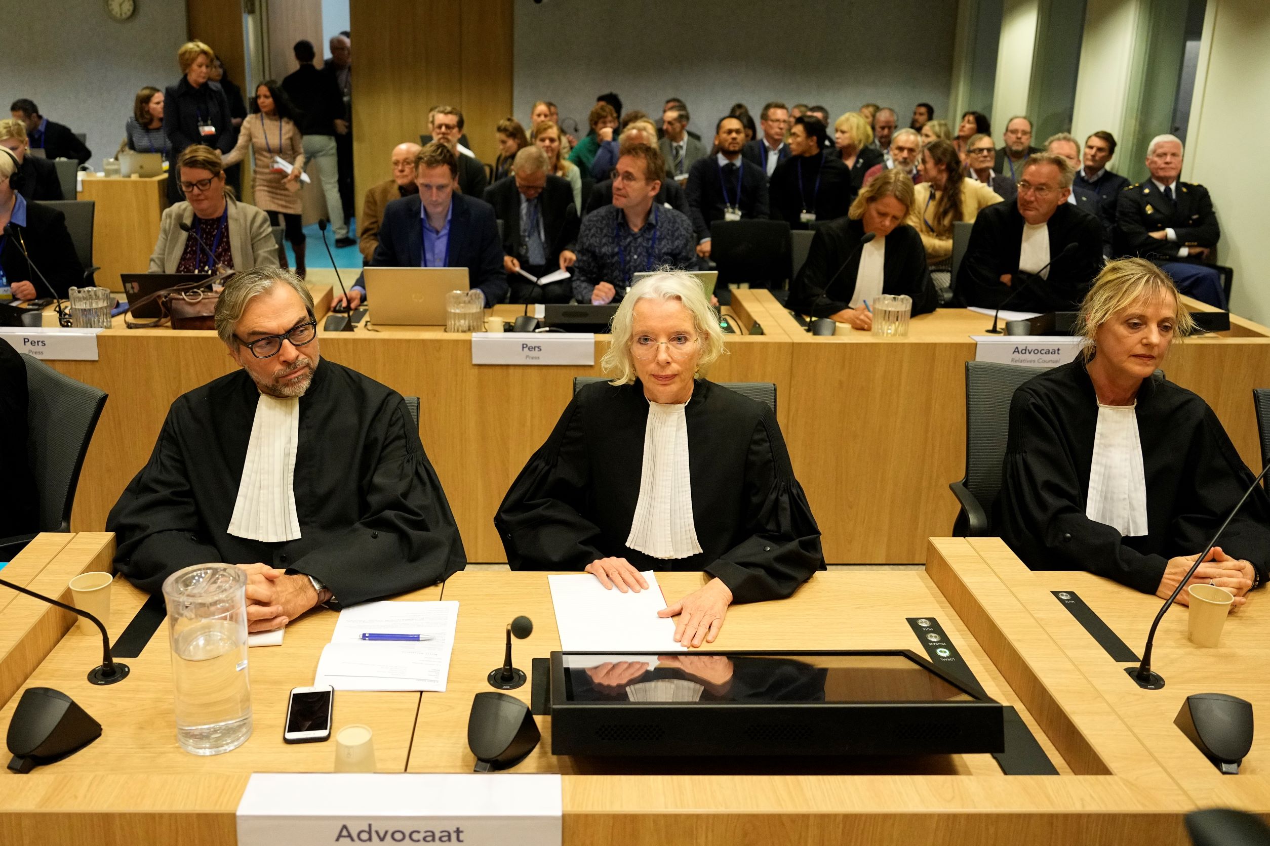 Siden de fire ikke var til stede i retten, ble rettssaken gjennomført i henhold til en kombinasjon av folkeretten og nederlandsk lov, som åpnet for at de kunne stilles for retten in absentia, altså i fravær.