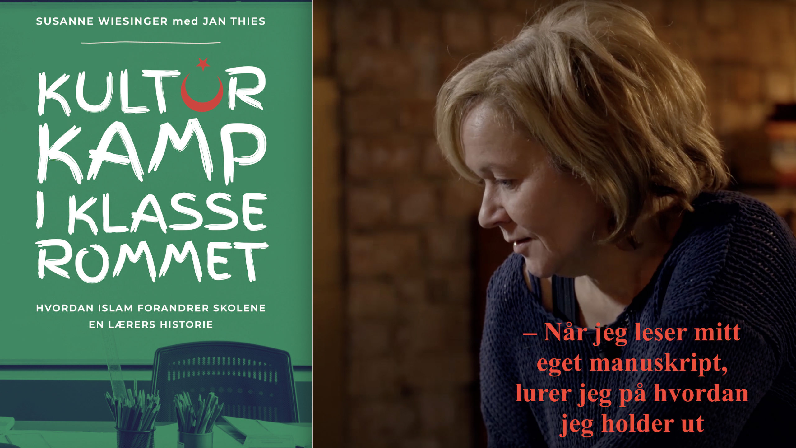 Omslag til «Kulturkamp i Klasserommet»: Document. Stillbilde av Susanne Wiesinger: Addendum / YouTube. Sitatet i påskriften er hentet fra et intervju med forfatterinnen i Kronen Zeitung.