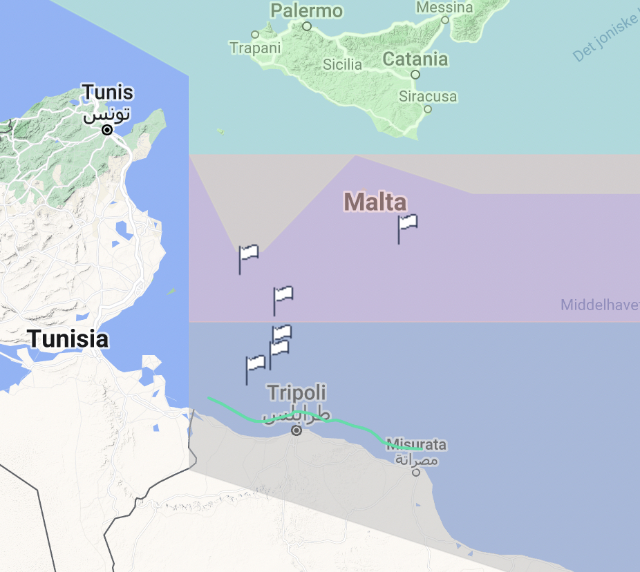 Men operasjonene fant sted i Libyas og Maltas søk- og redningssoner (SAR):