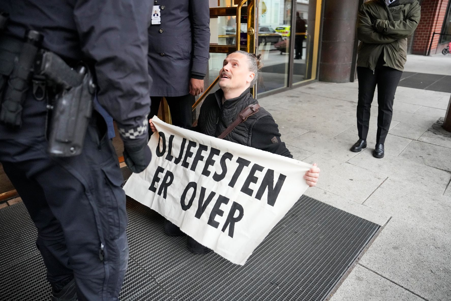 Arrangementet i Kristian IVs gate i Oslo sentrum pågår gjennom hele dagen i regi av Equinor. Aktivistene begynte å dukke opp rundt 12.30 tirsdag ettermiddag.