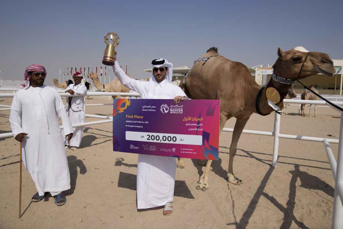 Nazaa’a viftet med øyevippene og viste fram et tannrikt smil foran kameraene da hun ble kåret som vinner av en skjønnhetskonkurranse for kameler i Qatar.