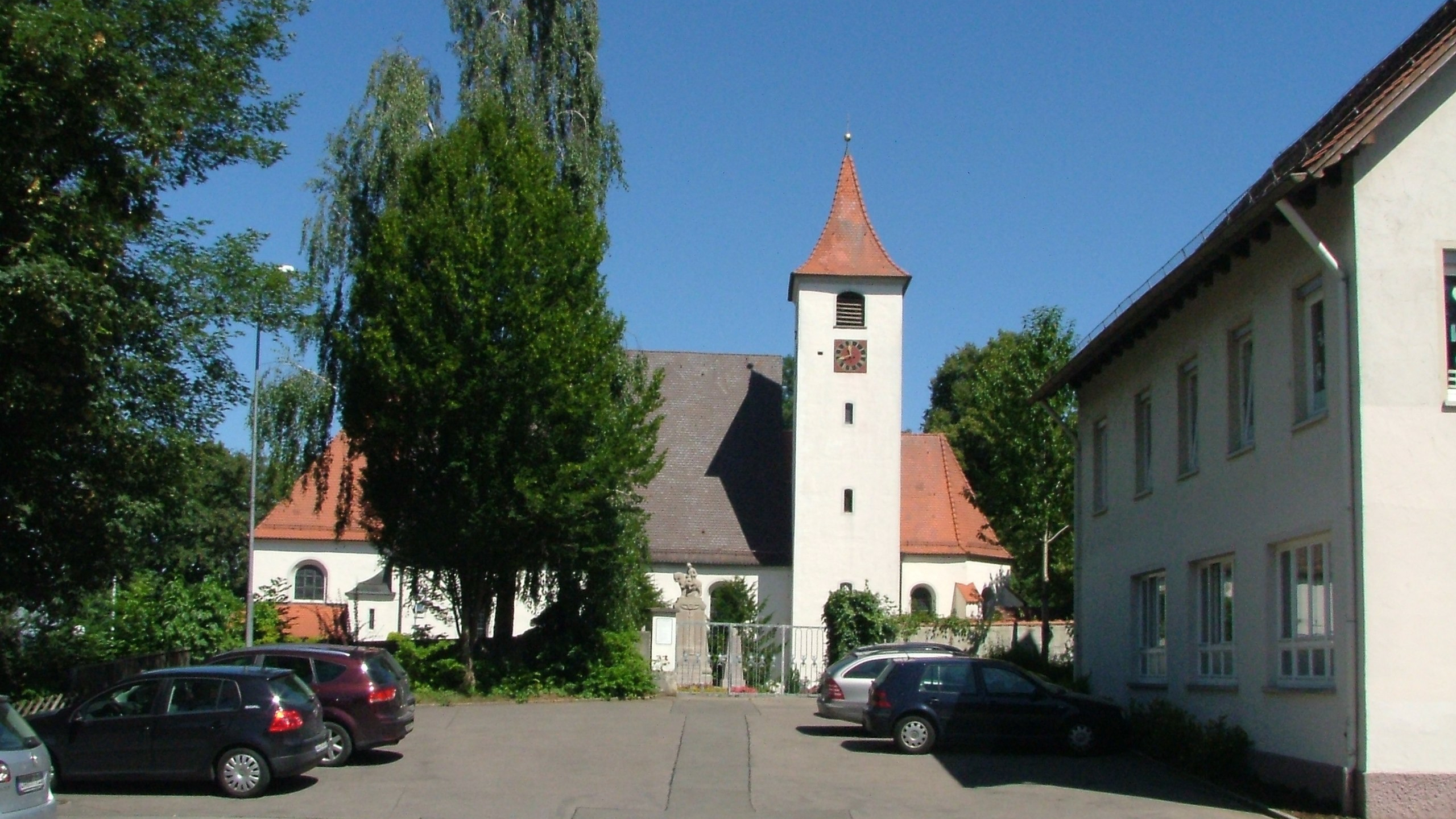 Kirken og skolen (til høyre i bildet) i Illerkirchberg. Foto: Mayer Richard / CC BY 3.0 / Wikimedia Commons.