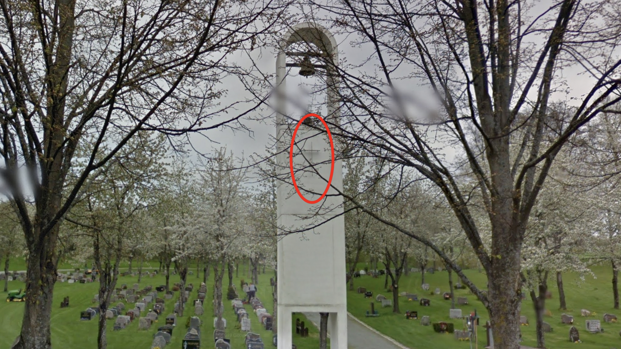 På klokketårnet ved Hol gravlund i Hamar er det et diskré kors som Human-Etisk Forbund på stedet forlanger fjernet. Foto: Google Maps.