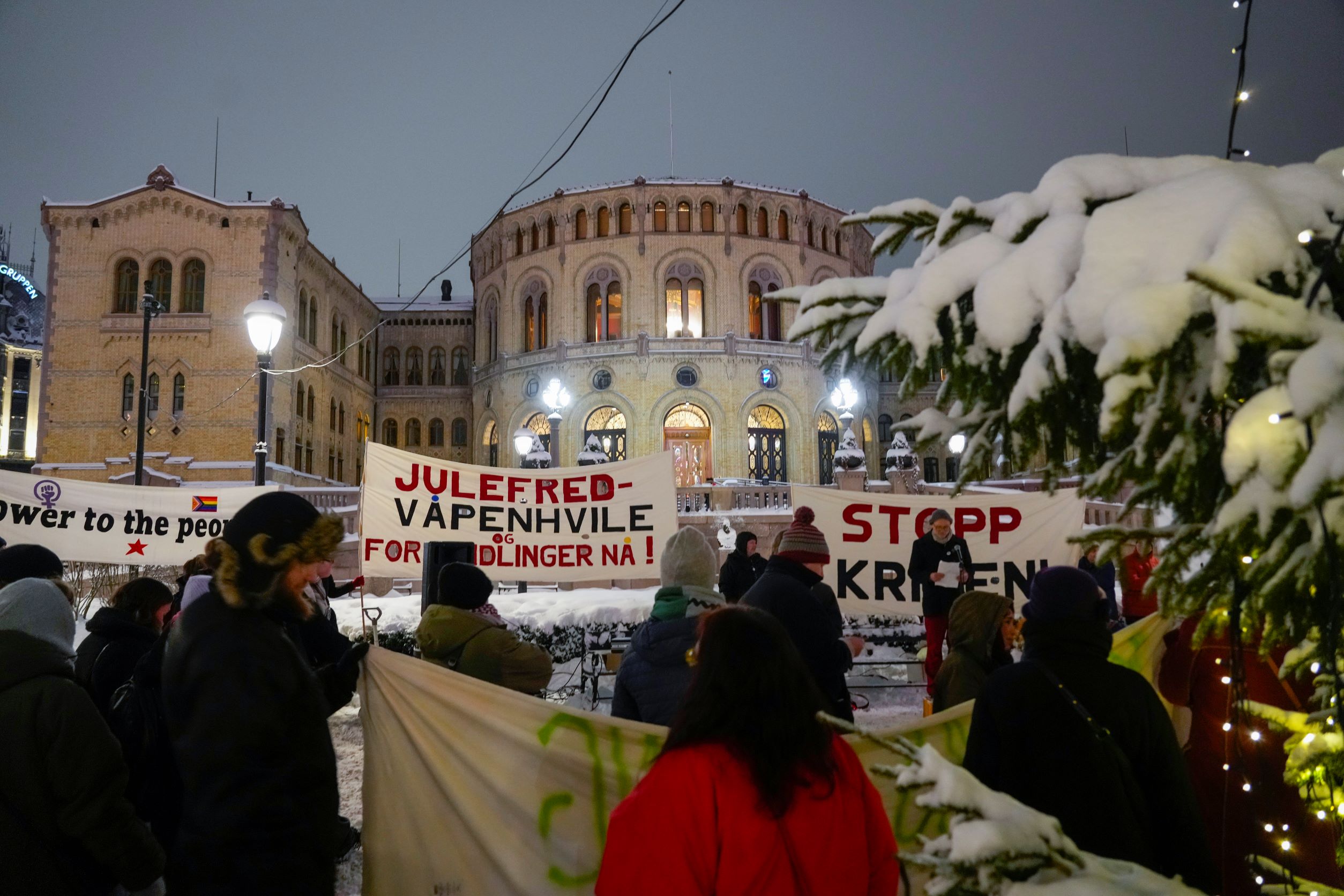 Hva var så viktig at Følsvik måtte rykke ut? Rundt 50 personer møtte opp til fakkeltog for fred i Ukraina lørdag på Eidsvoll plass. De var fra LO Oslo og Rødt Oslo.