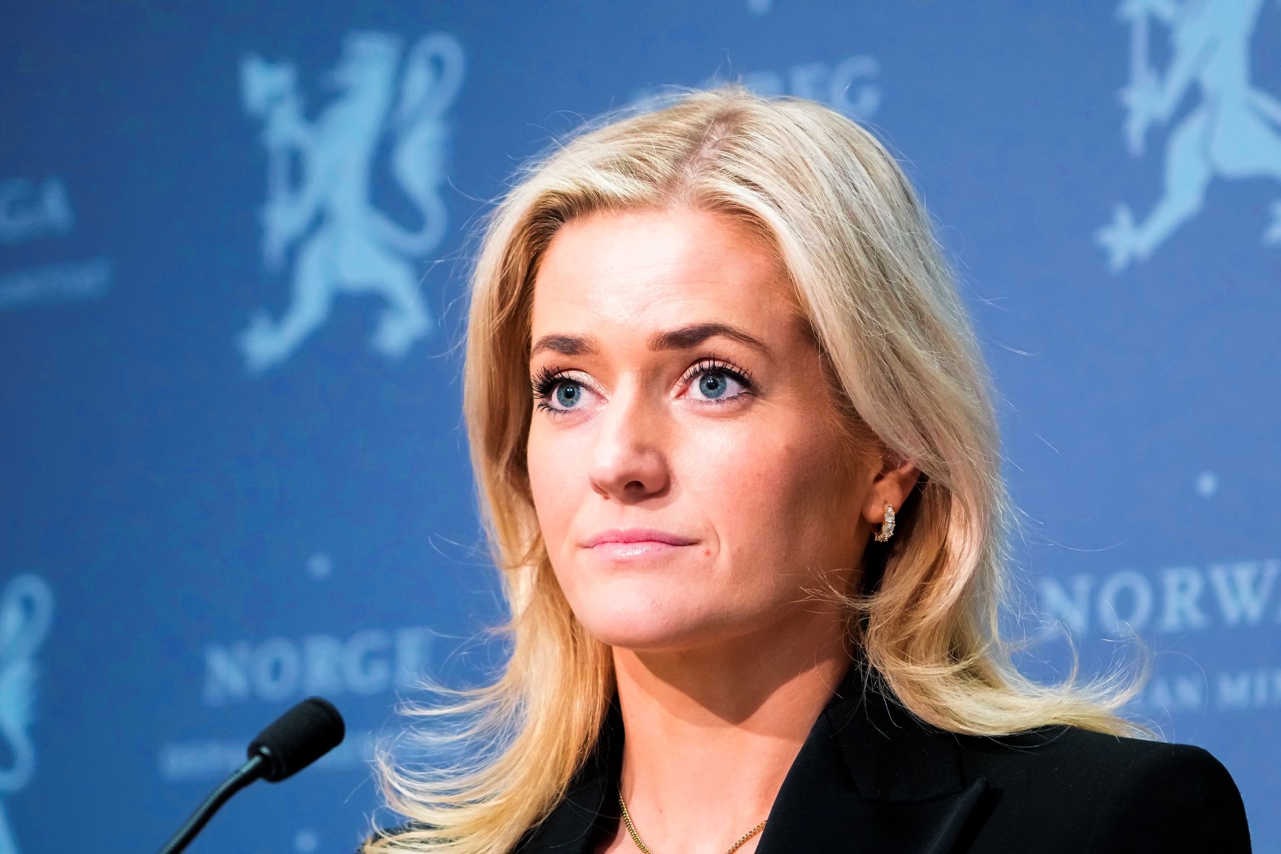 Justis- og beredskapsminister Emilie Enger Mehl på pressemøte etter frifinnelsen av Viggo Kristiansen i Baneheia-saken. Foto: Heiko Junge / NTB