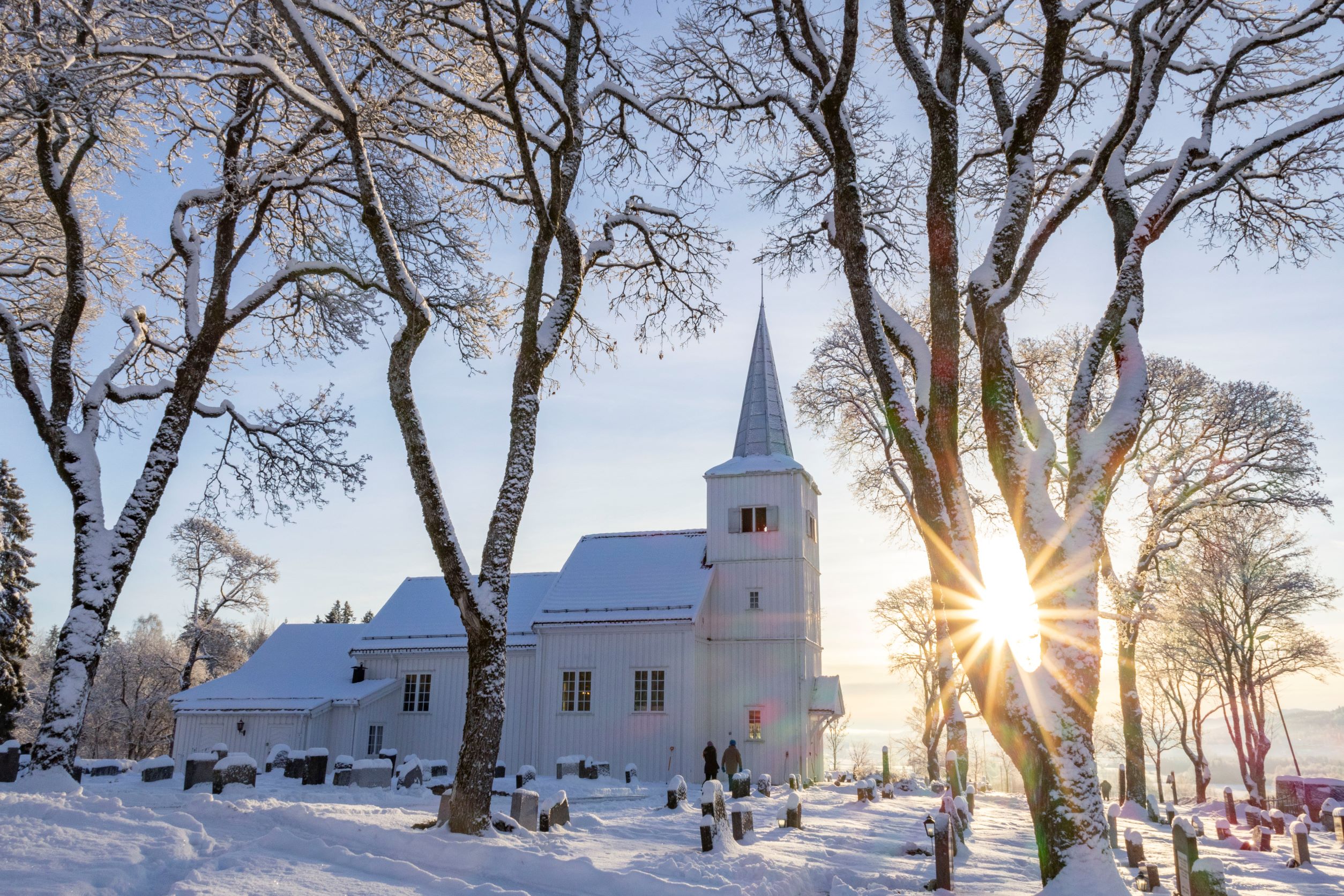 Kald og vakker vinterdag ved Hakadal kirke. Foto: Paul Kleiven / NTB