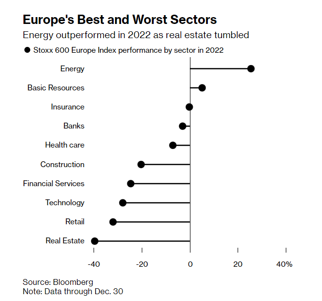 Europeiske børser har lagt et tungt år bak seg. Krigen i Ukraina får mye av skylden, i tillegg til kraftig inflasjon og økt styringsrente.