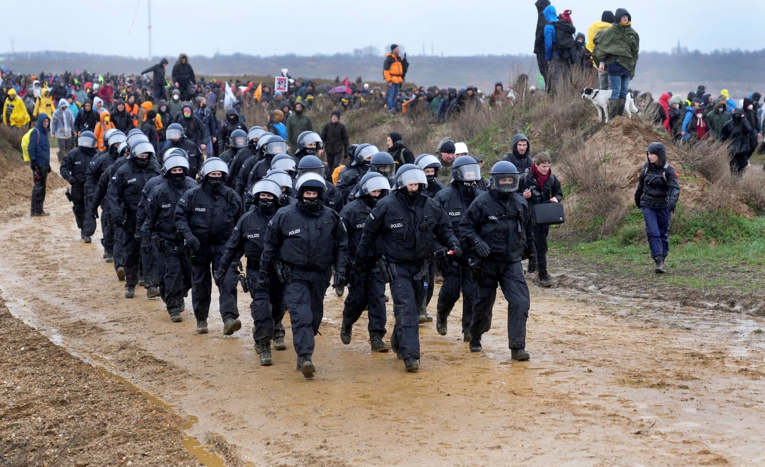 Politi rykker ut til demonstrasjon av klimaekstremister ved Lützerath i Tyskland. Foto: AP Photo/Michael Probst