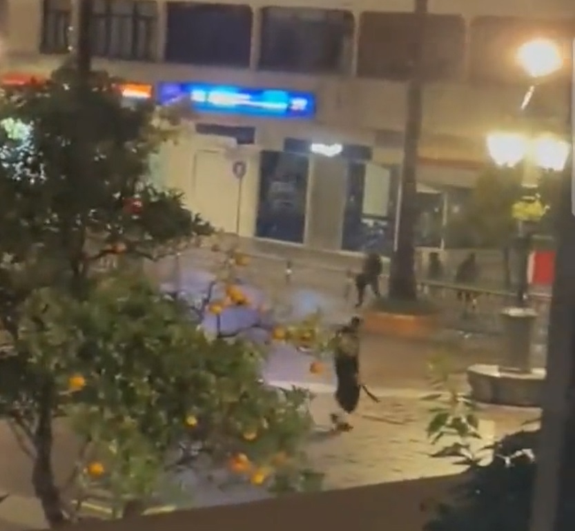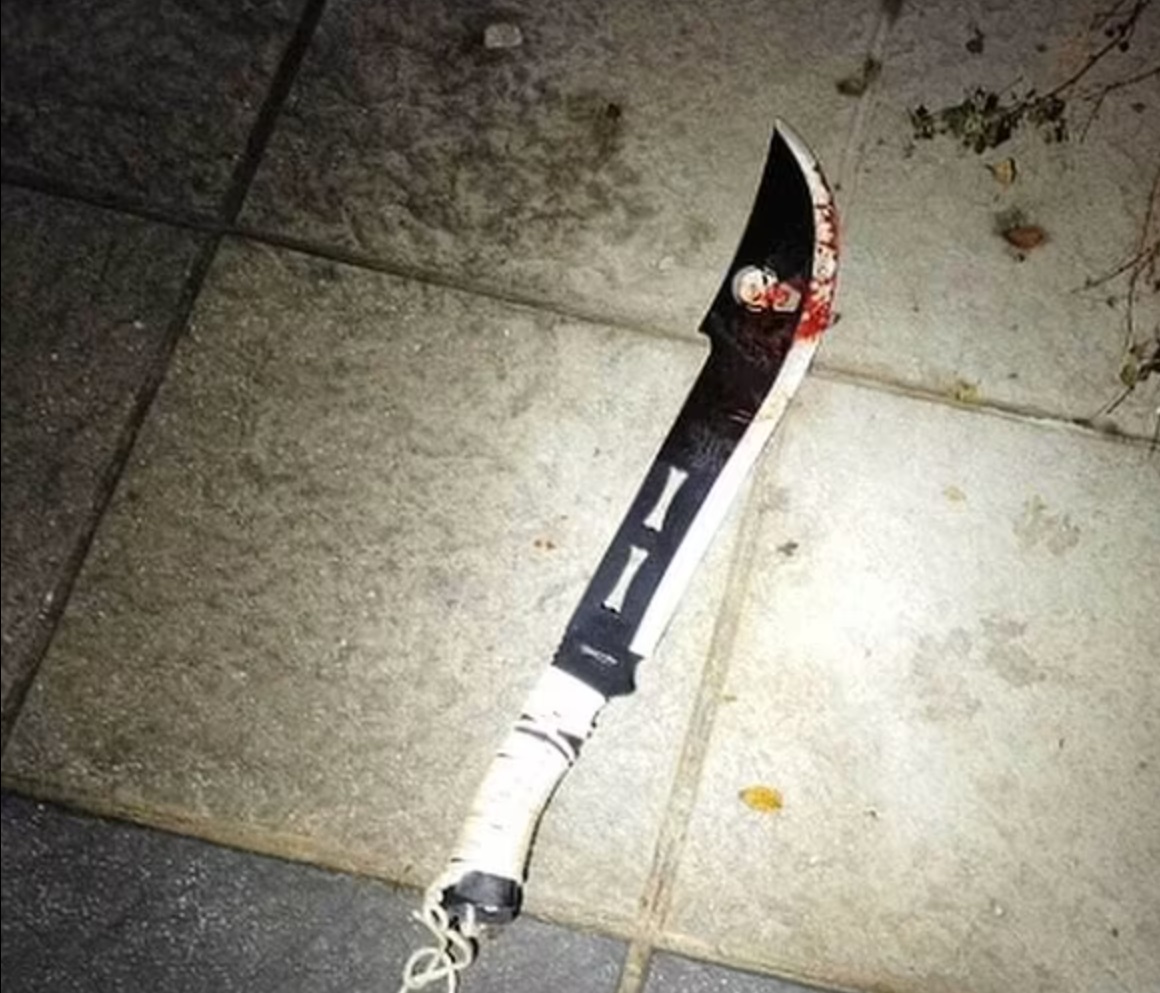 Gjerningsmannen kan sees gående med macheten på denne videoen: