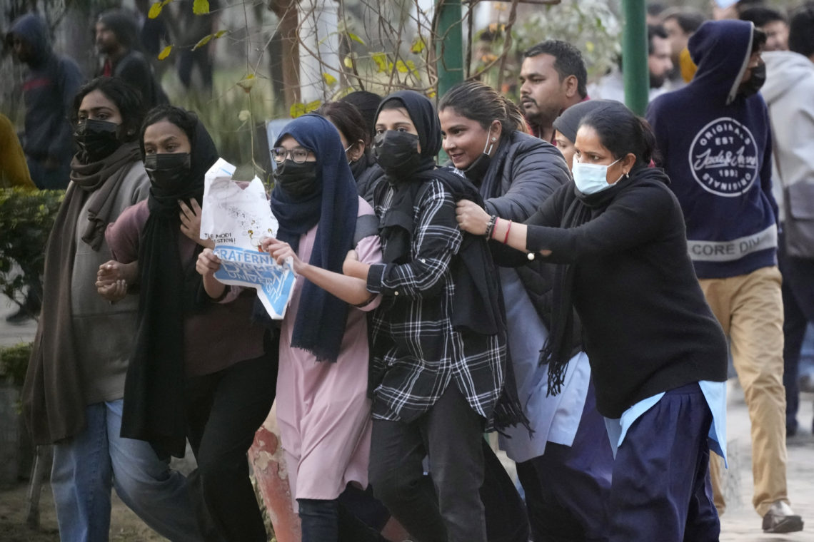Ifølge øyenvitner har indisk politi tatt oppstilling ved BBC-kontoret og hindre folk fra å gå inn eller ut av bygningen.