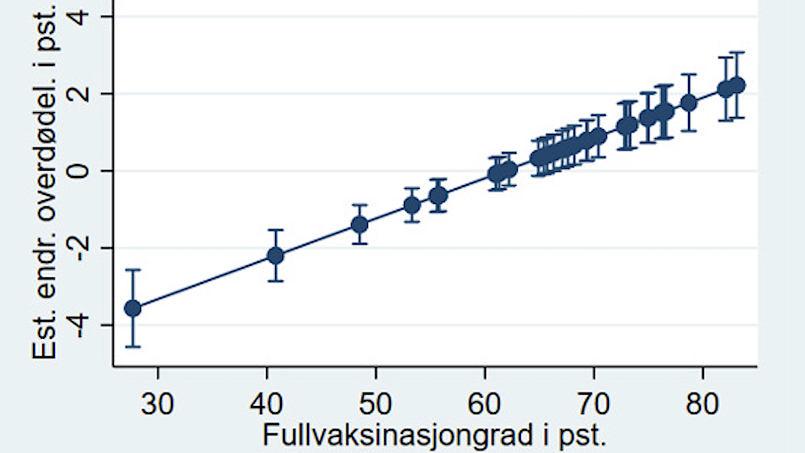 En statistisk analyse av vaksinerings- og dødelighetsdata for 31 europeiske land utført av norske forskere viser en sammenheng mellom nasjonal fullvaksinasjonsgrad og månedlig overdødelighet i tidsrommet januar til september 2022.