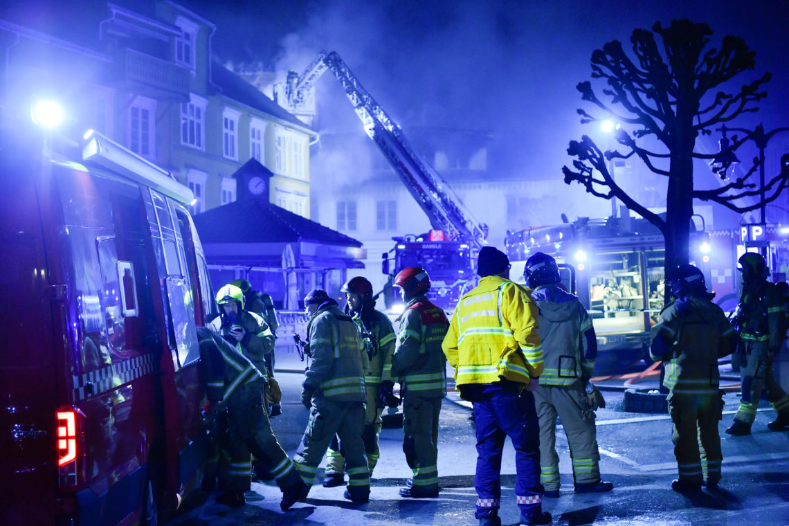 Det er ikke lenger fare for en stor bybrann i den gamle trehusbebyggelsen i Kragerø. Brannvesenet har kontroll, men brannen er ikke slukket.