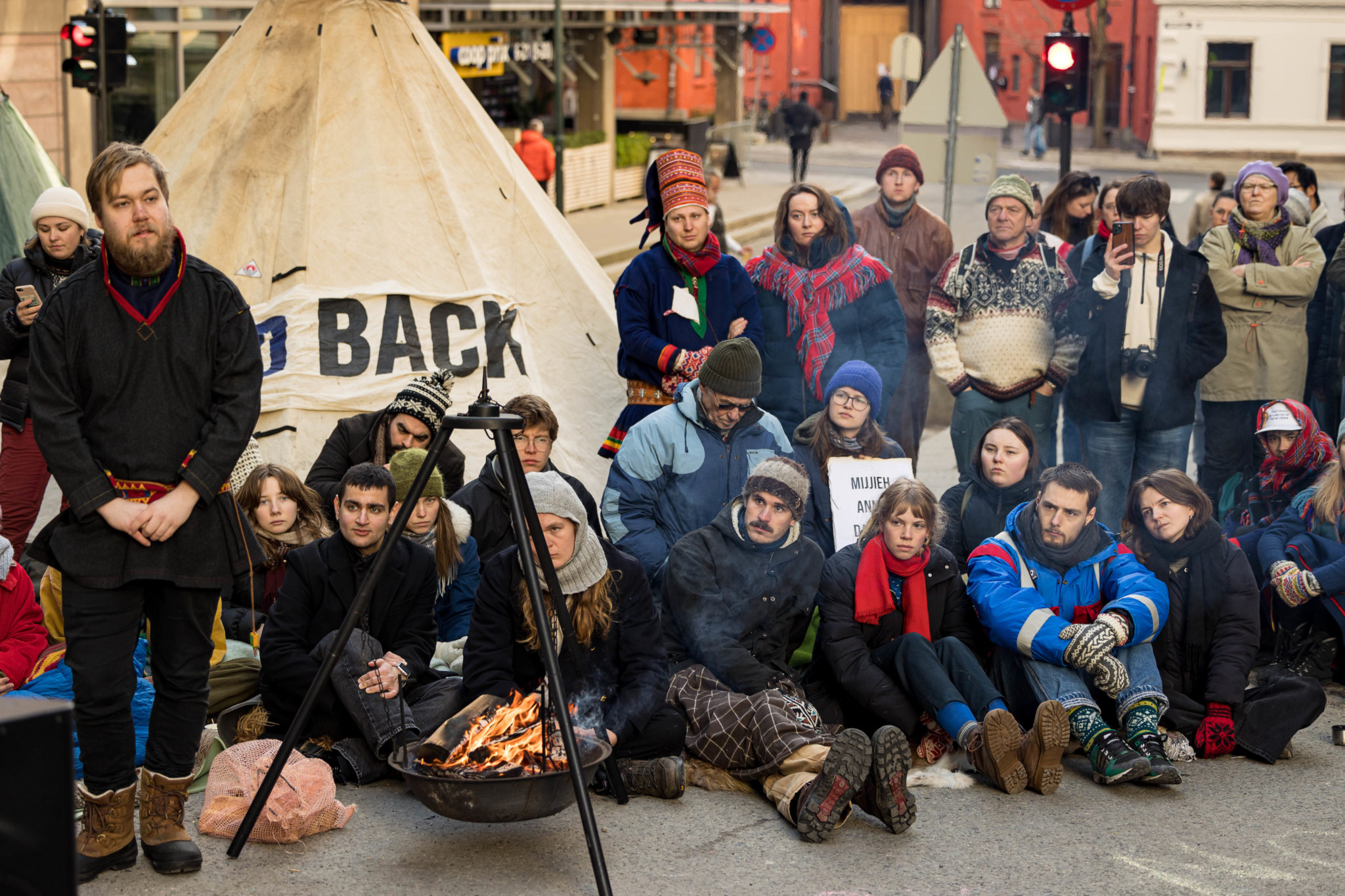 Demonstrantene utenfor regjeringskontorene nekter å møte olje- og energiminister Terje Aasland. De vil kun snakke med statsministeren.