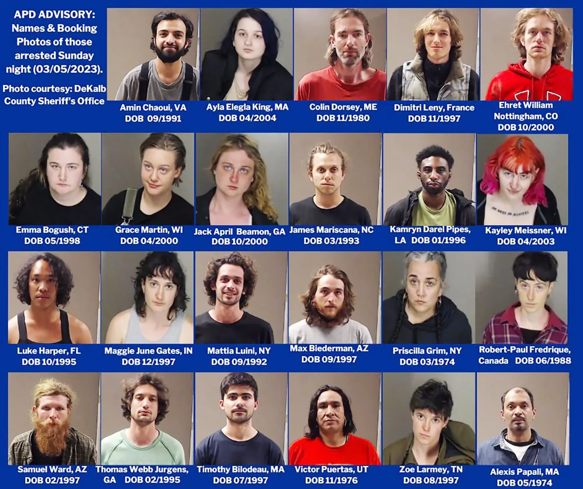 Av de 35 personene som er arrestert, er 23 siktet for innenlandsk terrorisme, sa politiet mandag. Bare to er fra delstaten Georgia, ifølge fengselsregistrene.