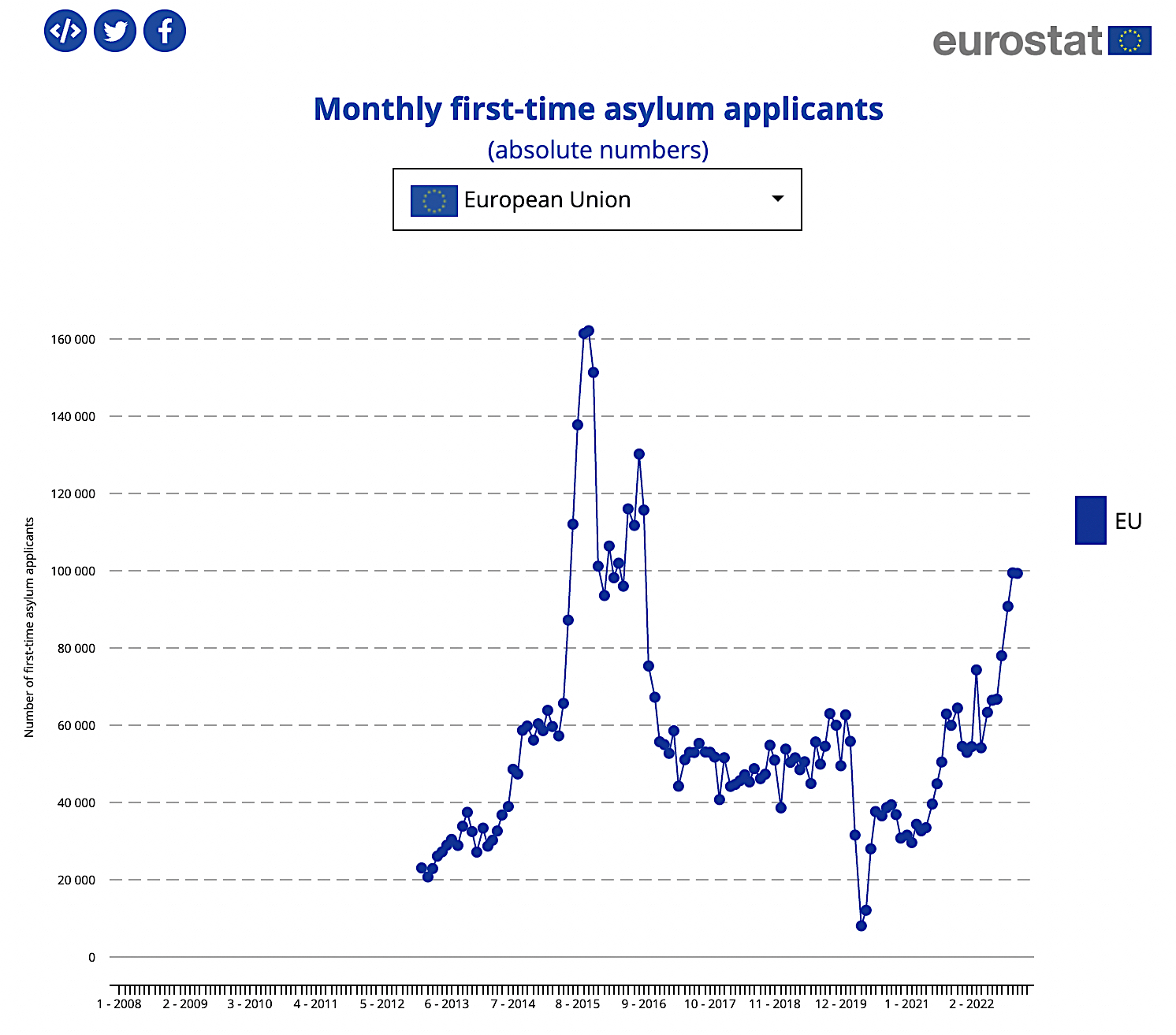 Trenden for det månedlige antallet nye asylsøkere i Europa er kraftig stigende, og i Libya befinner det seg ifølge italienske sikkerhetsmyndigheter nærmere 700.000 reiseklare migranter. Nesten en million asylsøkere kom til Europa i fjor, og antallet tegner til å bli enda større i år.