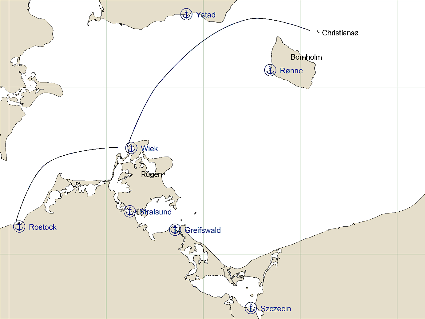 Journalisten fikk en lys ide og ringte lystbåthavnen Hohe Düne i Rostock og fikk straks et svar. Jo da, utleiebyrået hadde i september 2022 leid ut seilbåten «Andromeda», som var av den masseproduserte typen Bavaria 50, og derfor ikke spesielt oppsiktsvekkende blant turistseilerne i Østersjøen. Foto: SeaMe / NV Charts.